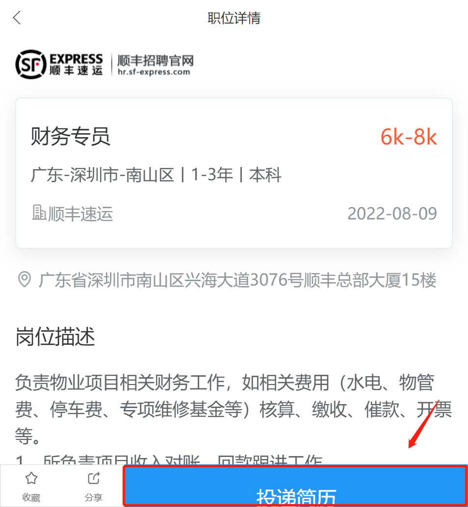招聘部门顺丰物流体验部